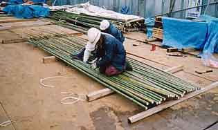 ![]() 24.すだれ竹を組む:径1寸程の女竹銅線で組む |
