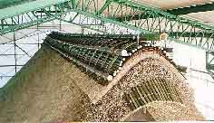 | 屋根勾配は地域により多少異なるが、この地域は矩勾配(45度)が主流でここでも同様にしている。。流れ方向にきっちり45度にすると凹んで見えるため、流れ中央を2寸程厚くして刈込んでいる. | ||