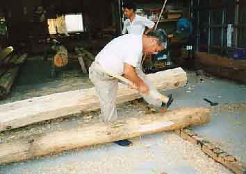 ![]() 6.松梁八面取りちょうな加工 |