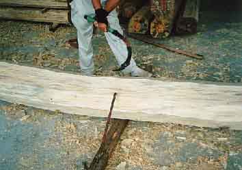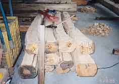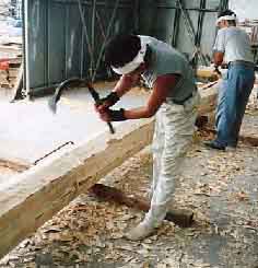 ![]() 5.梁材八面取り:まさかり荒仕上げ |