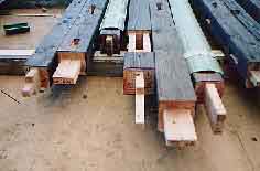 構造体の接合部(仕口・継手) 江戸時代を通して発展した民家架構は、江戸後期に技術的にはこのような大型の家が一般に作られるようになった。伝統様式の民家では、柱と梁などの接合に金物はを使わない。また、釘も使わないので木材の乾燥収縮による金物の緩みや釘腐食による耐力低下がない。現在の在来工法住宅では、梁・柱・土台をピン接合にして筋違いに水平耐力を負わせている。民家ではコンクリート構造のように柱梁は一体で貫と合せて水平力に耐えている。架構様式の発展に合せて仕口も工夫され、木だけの接続であるが、それぞれ剛性が高い。架構方式と合せて乾燥しても緩まないよう栓で締める形を多く取っている。貫は横材を壁の中に入れ、柱を突き通して楔締めをして水平力を受けている。筋違い方式に比べ力の掛り始めの変形量が大きいが、変形がある程度進むと効いてきて、粘り強い柔軟性のある構造である。しかし、タタキ廻りと北側の壁以外は殆どが開口部で貫のある壁が少なく、水平力を受ける構造として架構体の接合部の剛性が最も重要であり、それが仕口の仕組みに掛っている。架構方式でも剛性が高まる工夫があるが、乾燥しても緩まないよう栓で締める形が多い。またこの仕組みによって解体再組立てが可能で多くの家が移築された。 |
