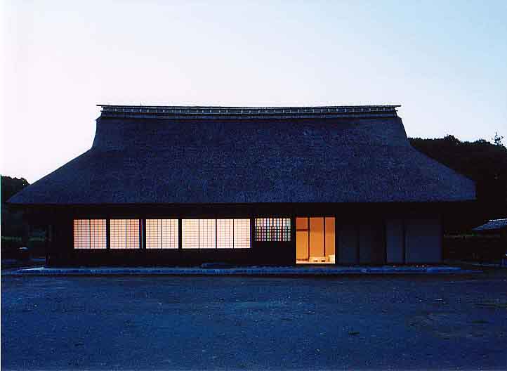だいどころタタキのモデュールは7尺、それ故、大戸の開口は柱芯で7尺。開口左の格子窓はゆどの。左側の座敷は1間ごとに柱が立っているが、3間巾の座敷は2間飛んだ大きな柱間があり、構造的に進化様子が伺える。