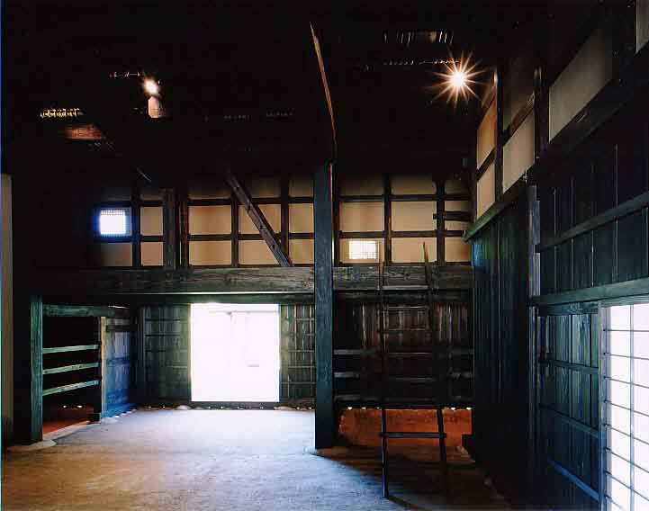 9尺角の厩が2室ある。名主格のこの家には2頭の馬がいたのか、青梅街道の旅の馬を泊めたのか。二階は男の使用人の部屋。東側に下地窓があり、屋根裏に上る梯子が掛かる。