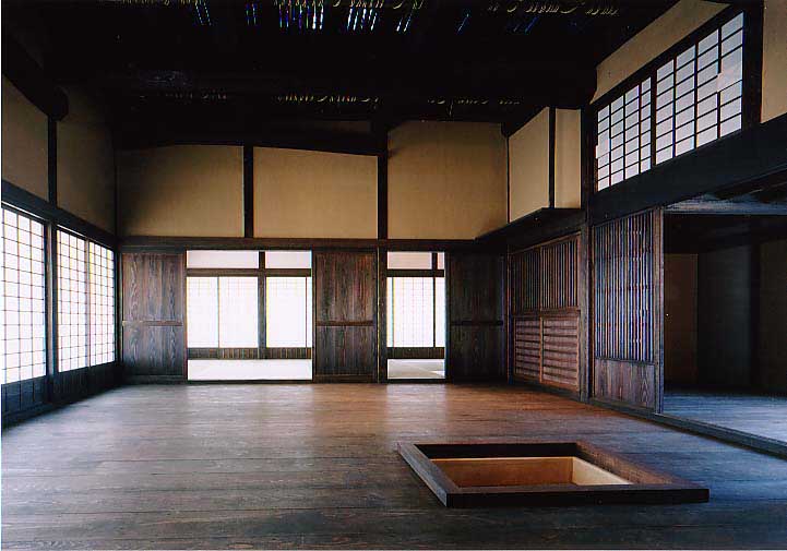 部屋境は床の仕上げが3種類あり、違いに応じて建具を変えている。土間と板の間は建具なし。板の間と板の間は格子戸、板の間と畳は板鏡戸、畳と畳は襖戸である。部屋の格に合わせて、仕上材や飾りを変えている。