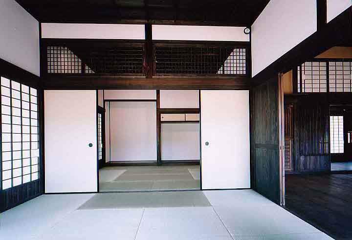 座敷、かってが日常生活の空間に対し、デイと奥の間は、客間・人寄せの空間であった。この2室だけが畳敷き、壁喰壁塗り、竿縁天井がある。唯一この二室の仕切にだけ襖が用いられている。
